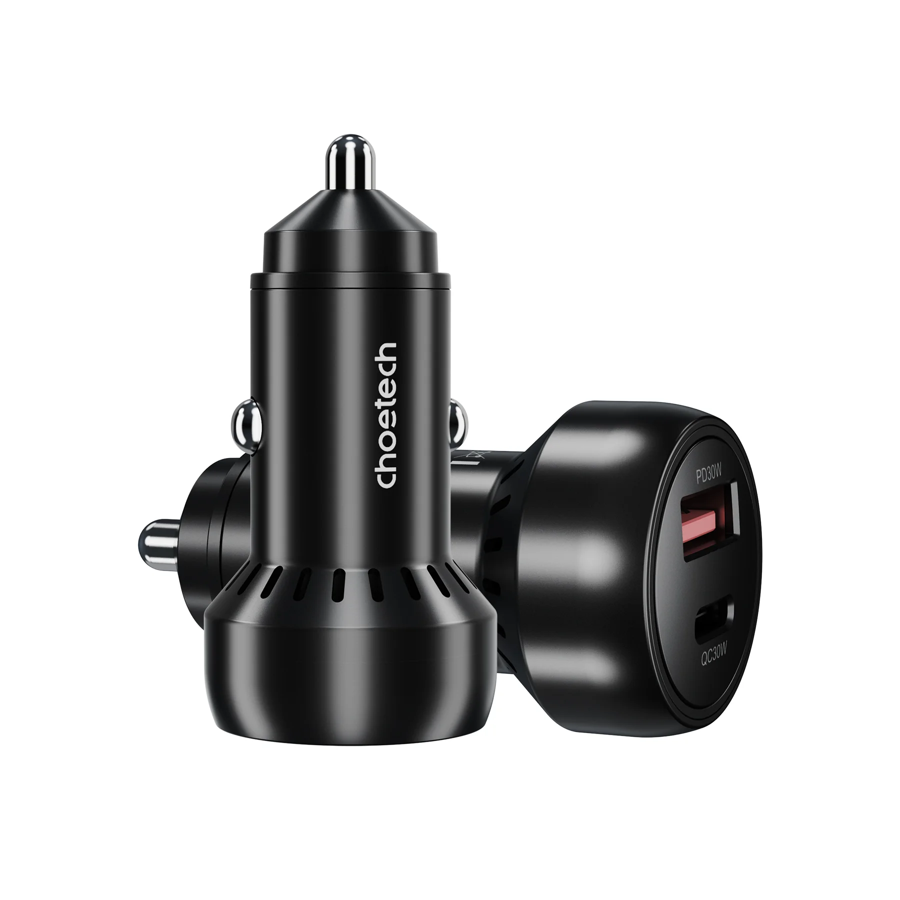 Choetech 2-portars billaddare QC, 60W (USB-C + USB-A), svart